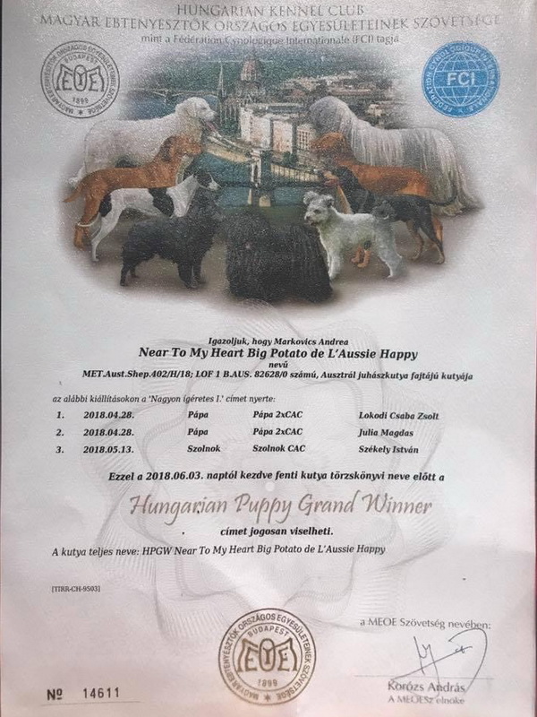 Nati’s show results We haven’t reported on it yet, but we’ll make up for it now! 😀Before Nati became a proud mum, she had great results in several shows. Among them were Hungarian and foreign shows.2018 Szolnok – CAC (HPGW – Hungarian Puppy Grand Winner)2018 Pápa – 2xCAC2018 Arad – Romanian Junior Champion2018 Backa Palanka – Serbian Junior Champion